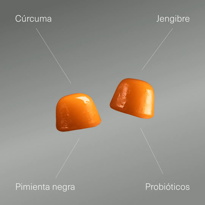 Each gummy contains a formulation that includes turmeric, ginger, and black pepper, along with probiotics, to enhance physical and mental wellbeing.