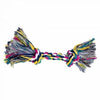 Made with durable cotton and designed with braided ropes and knots on each end, its vibrant multicolor design captures your pet's attention.