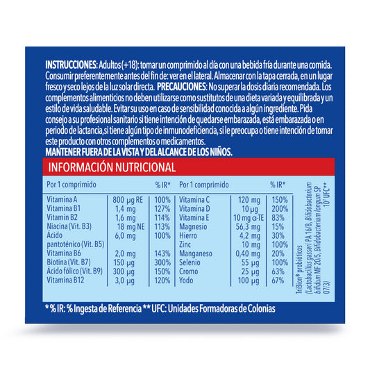 - FORMULE UNIQUE 3 EN 1 avec probiotiques, magnésium et 8 vitamines. Avec des vitamines B2, B3 et B7 pour aider l'intestin², des vitamines B12, B1 et B6 pour aider le métabolisme énergétique, de la vitamine C et du magnésium pour réduire la fatigue et l'épuisement