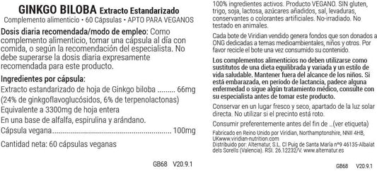 Fournisseur :Viridien Ginkgo Biloba Ext. Feuille Standardisée 60 Vcaps