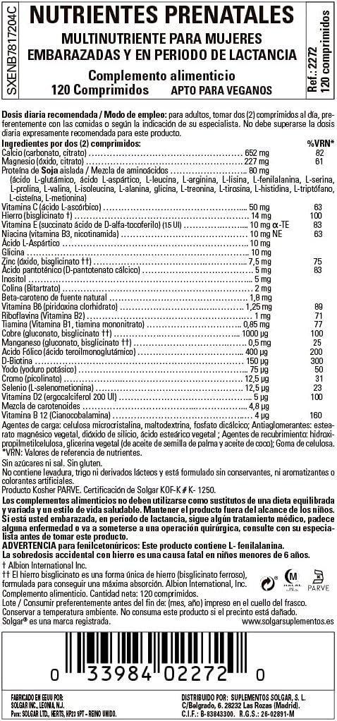Nutriments prénatals Solgar 120 gélules