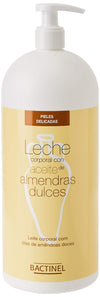 Bactinel Leche Almendras Dulces 750 ml, leche corporal con aceite de almendras dulces, rica en ácidos grasos, vitaminas y oligoelementos, que hidrata, nutre y regenera la piel de toda la famillia. Indicada para todo tipo de pieles, incluso las más delicadas.