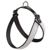 Con un diseño elegante en blanco y negro, este arnés de nylon combina una estructura ergonómica que distribuye la presión equilibradamente, previniendo tensiones en el cuello.