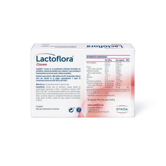 Proveedor:LACTOFLORA Ciscare Probiótico Arándano Rojo Bienestar Urinario 30 cápsulas