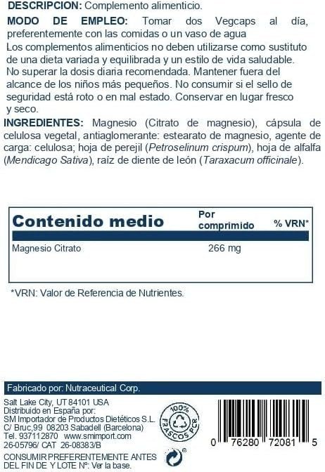 Proveedor:Solaray Magnésio Citrato 180 Cápsulas